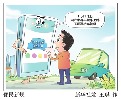 11月1日起,30多家车企的国产小客车新车上牌不用再跑车管所!记者14日从公安部新闻发布会获悉:国产小客车新车上牌“一件事”服务11月1日起在全国全面推行,全面推进买车、购险、缴税、上牌等“信息联动、一站办结”,群众办事时间将从线下2个多小时压缩至线上半小时内。